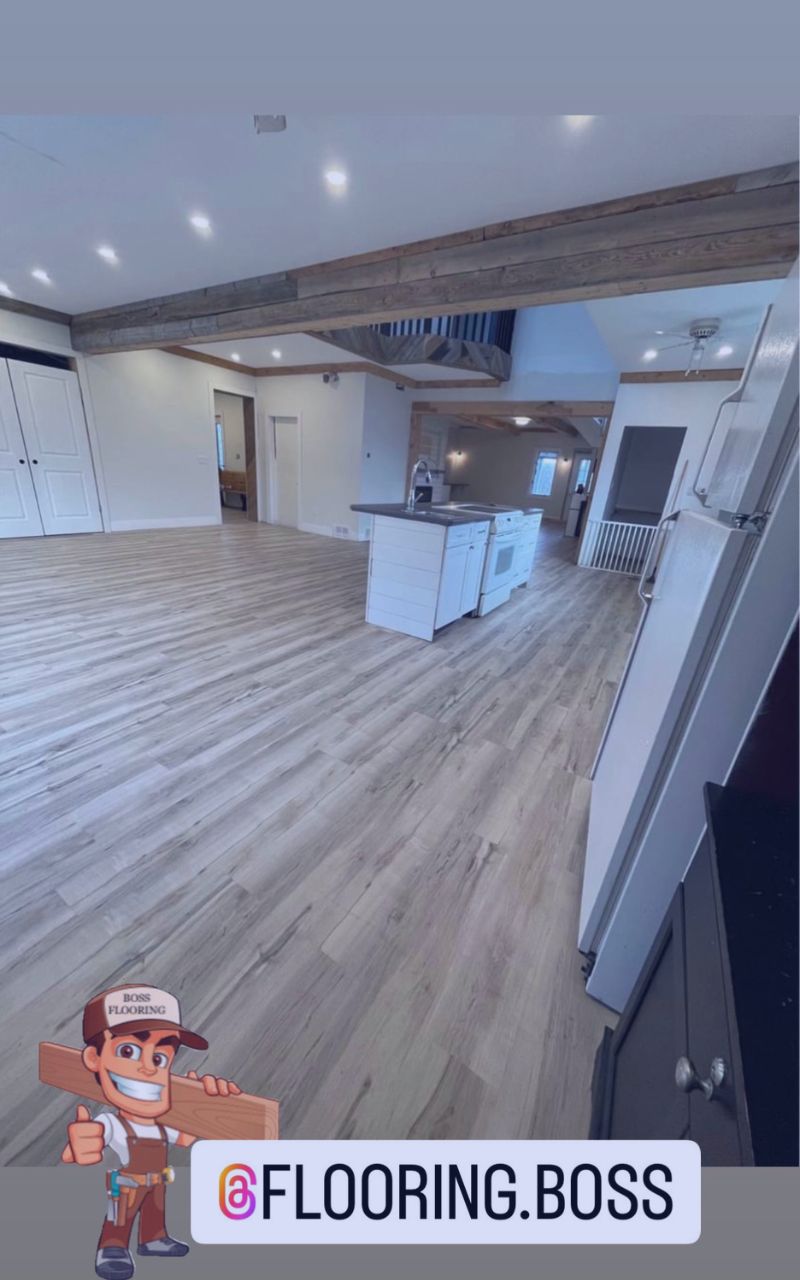 The transformation of our living space with vinyl tile flooring from Flooring.Boss has been remarkable. The attention to detail, the precision of the installation, and the team's ability to work around our hectic schedule was truly appreciated. Our floors are not only beautiful but also durable and easy to maintain. A heartfelt thank you to the Flooring.Boss team!